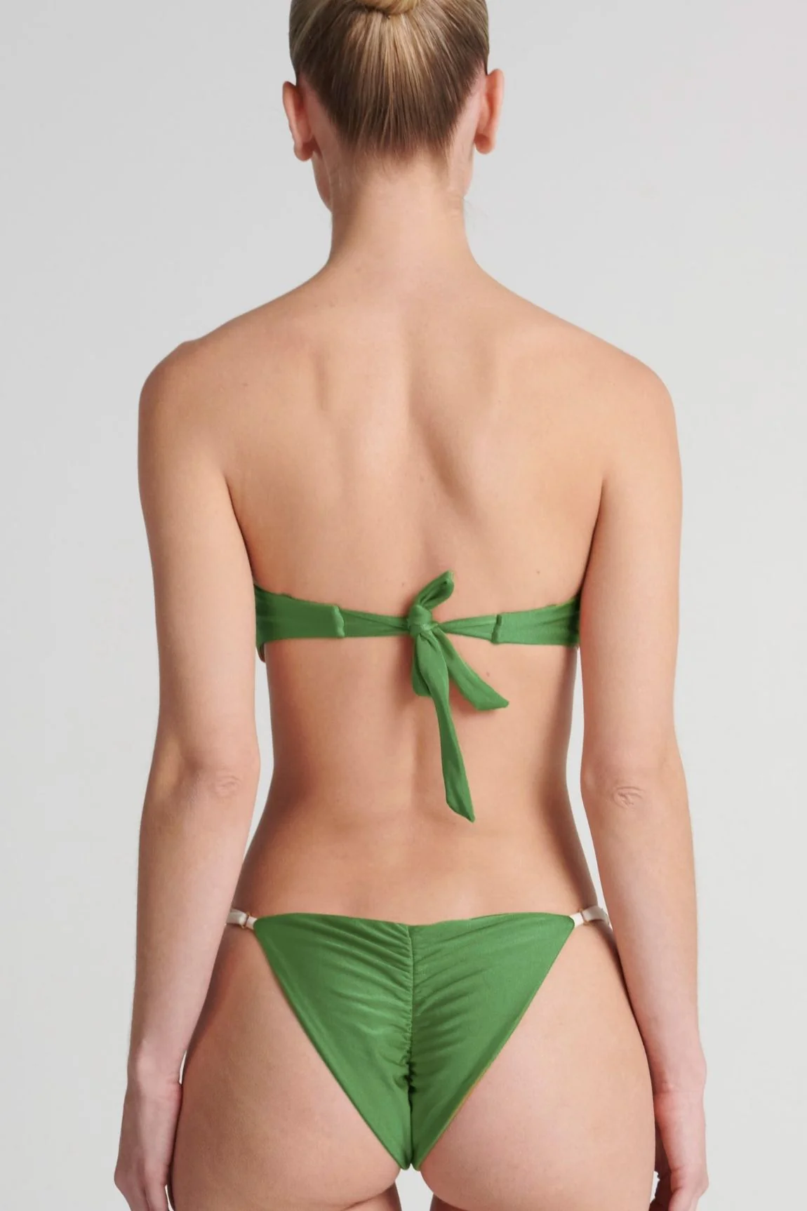 Bottom with adjustable side sliders in a gold-plated finish, and ruched back