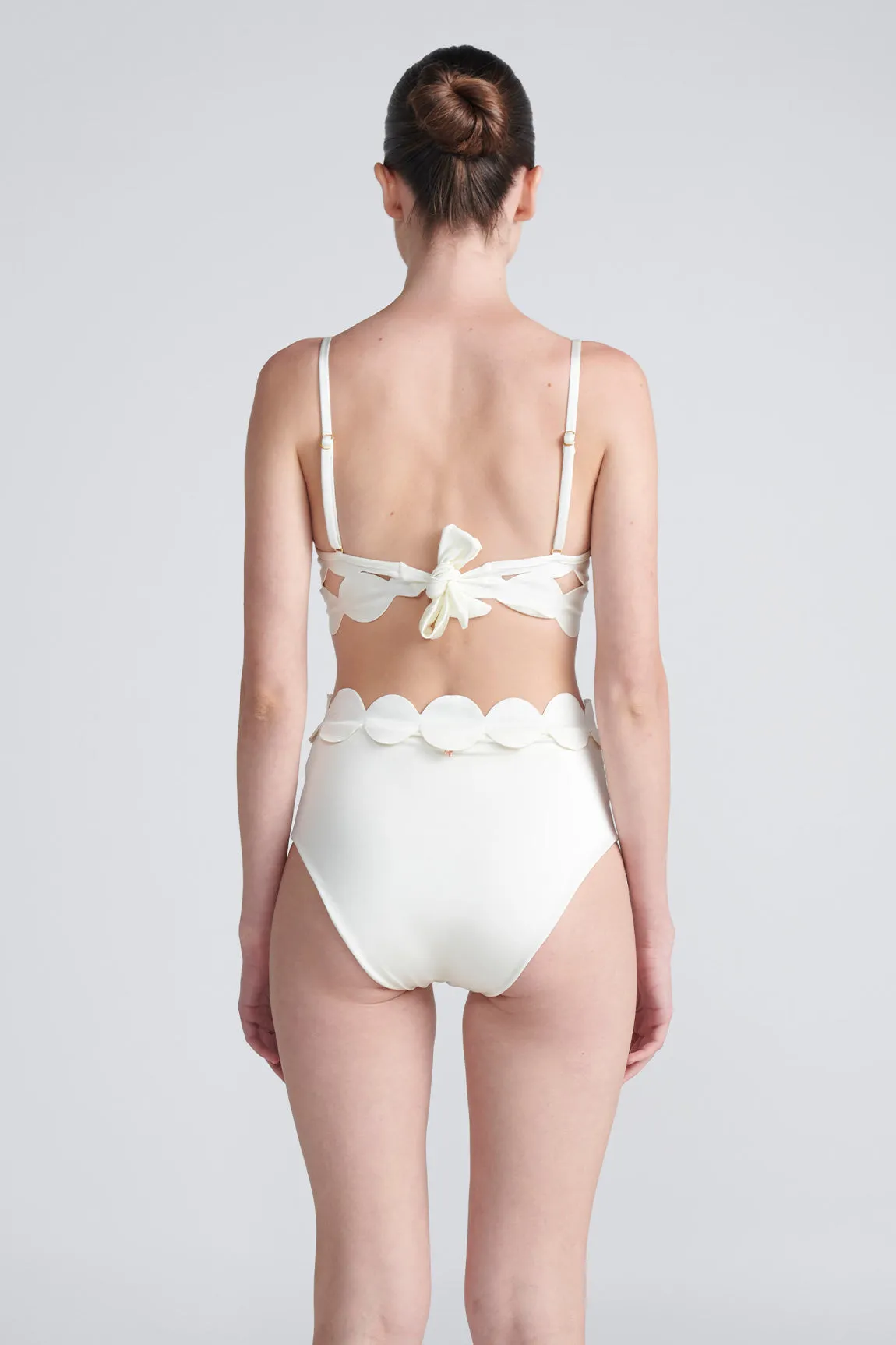 Satin High-Waist Bottom, Laminated circles and gold-plated accessories.