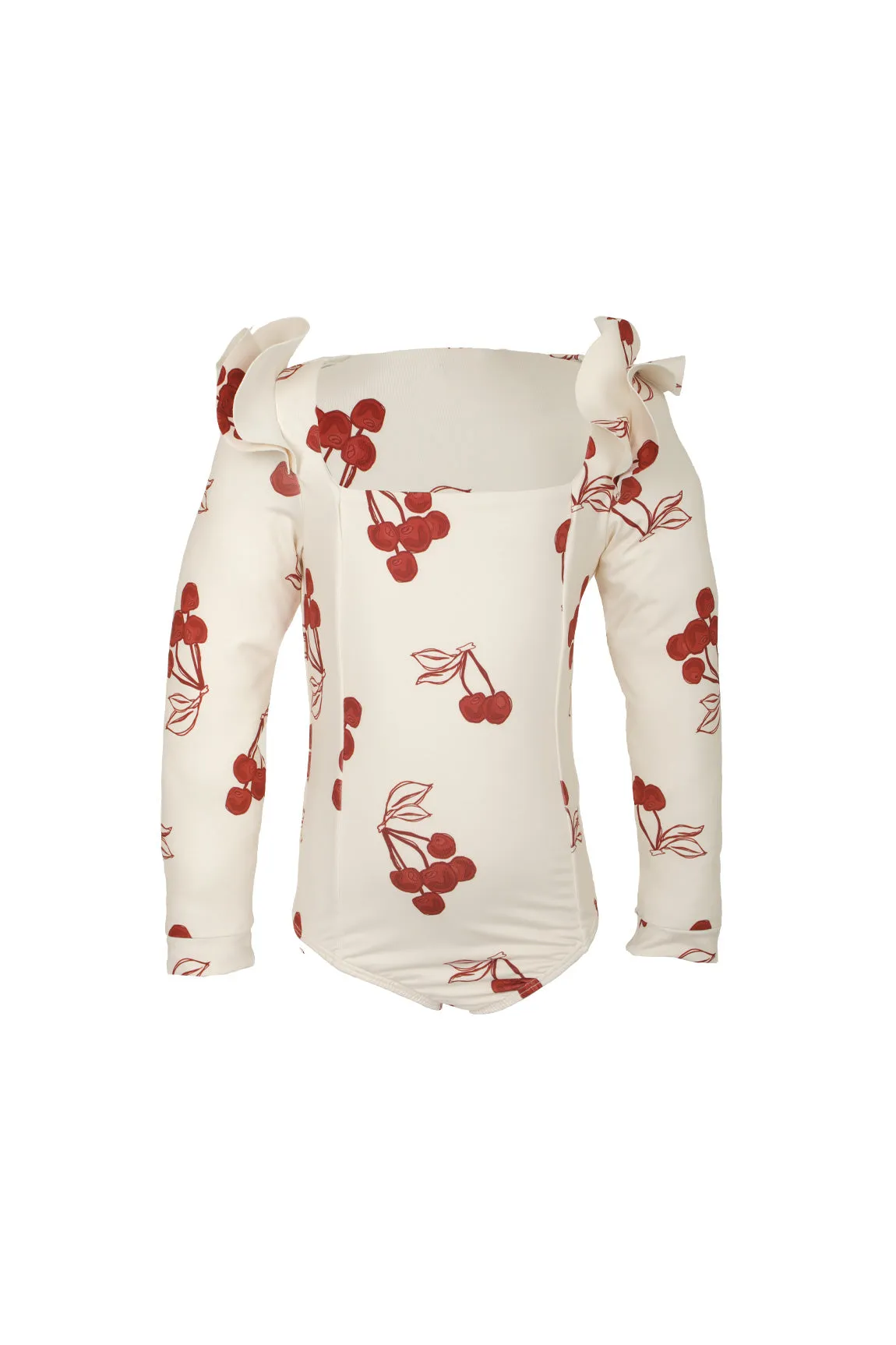 One piece with ruffles on the shoulders and gold-plated details. Model wears size 6. Composition: 82% polyester microfiber 18% elastane. EKO®FIBERS made from recycled bottles. Care: avoid soaking, wash separately and by hand.
