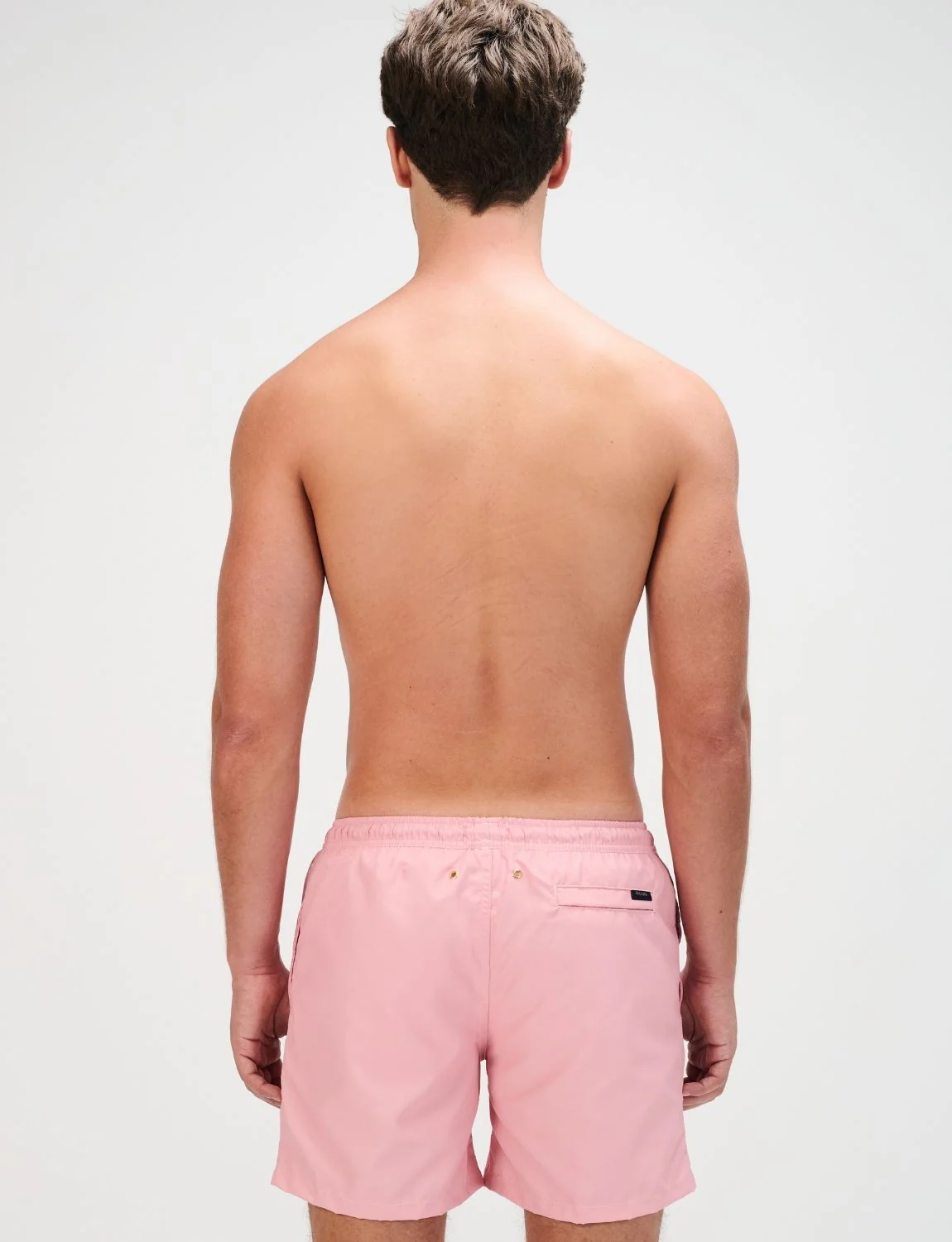 This Swim trunk has an elastic waistband, adjustable drawstring, and internal mesh. Material: 100% polyester.