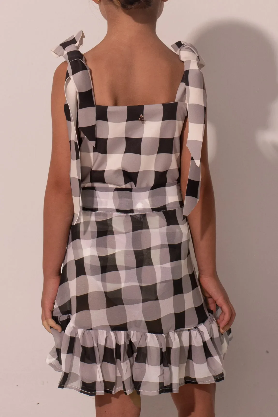 Mini skirt with an adjustable closure system at the waist. Model wears size 6. Composition: 100% polyester. Care: hand wash separately, avoid soaking, delicate fabric.