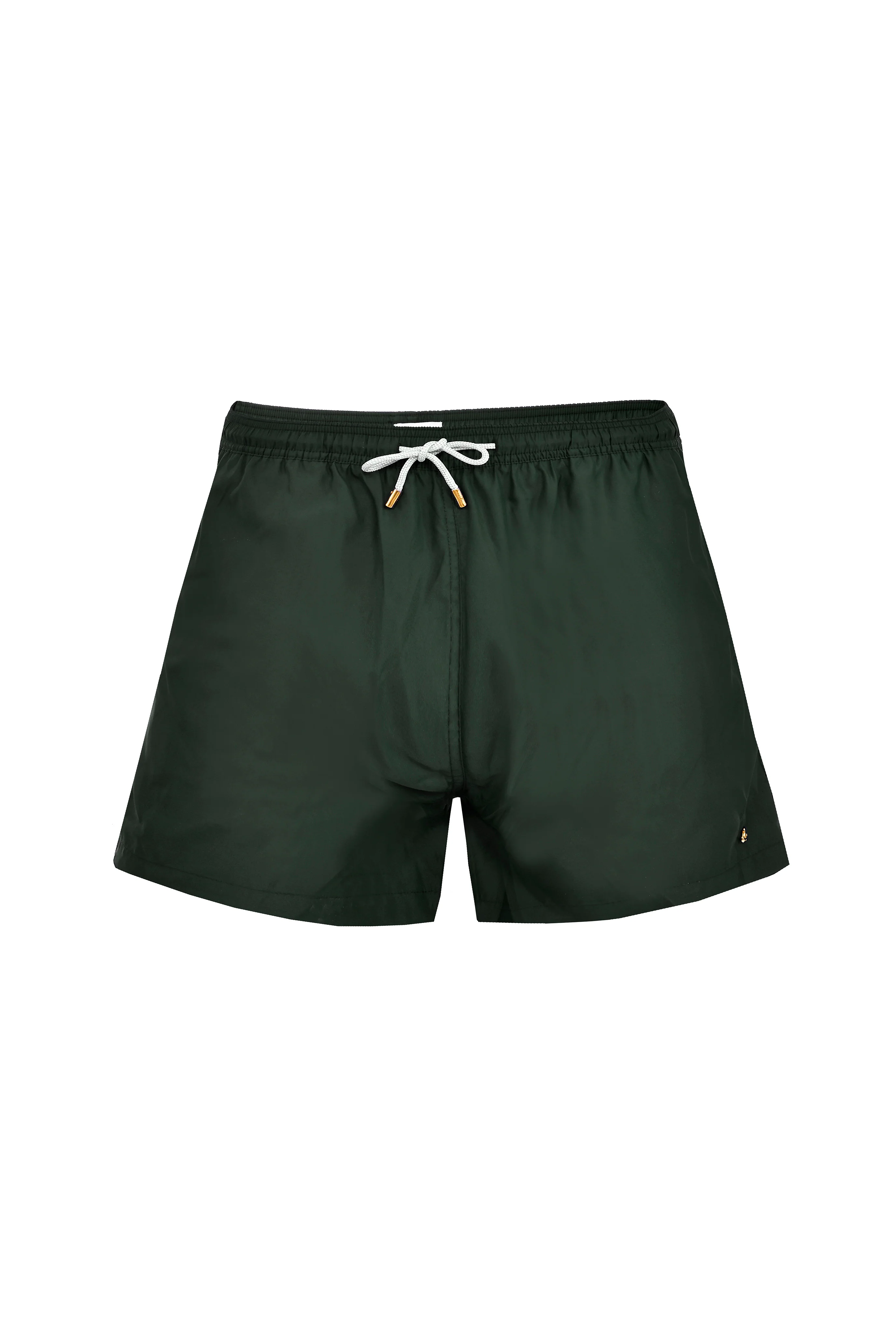 Swim trunk with an elastic waist, adjustable drawstring, internal mesh and gold-plated details. Composition: 100% polyester. Care: hand wash separately, avoid soaking, delicate fabric.