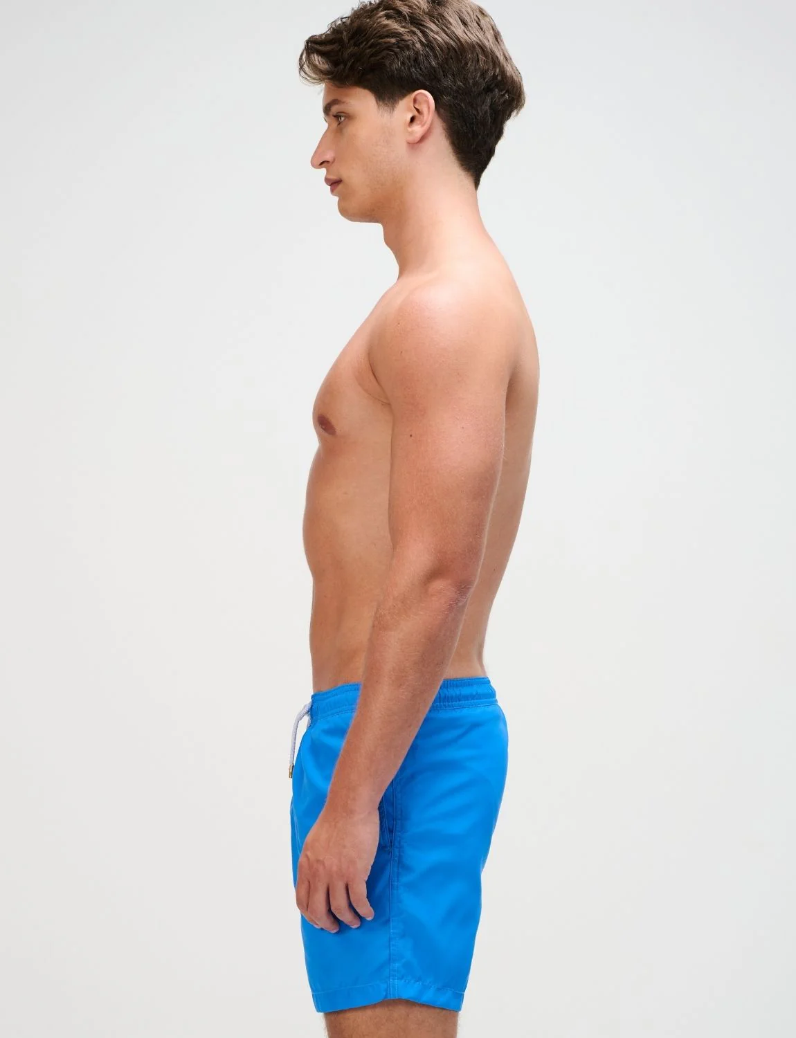 Swim Trunks, elastic waistband, adjustable drawstring, and inner mesh.